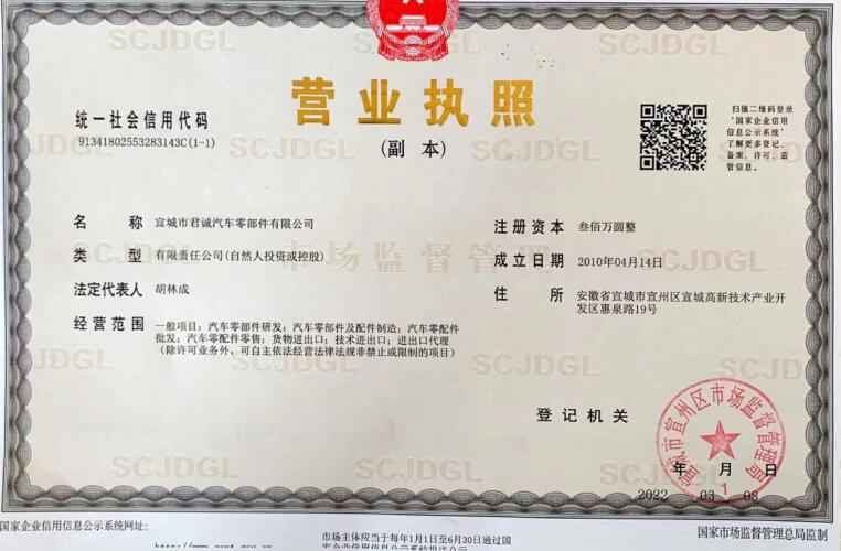 宣城市君誠汽車零部件有限公司 地址:安徽省宣城高新技術(shù)產(chǎn)業(yè)開發(fā)區(qū)惠泉路19號